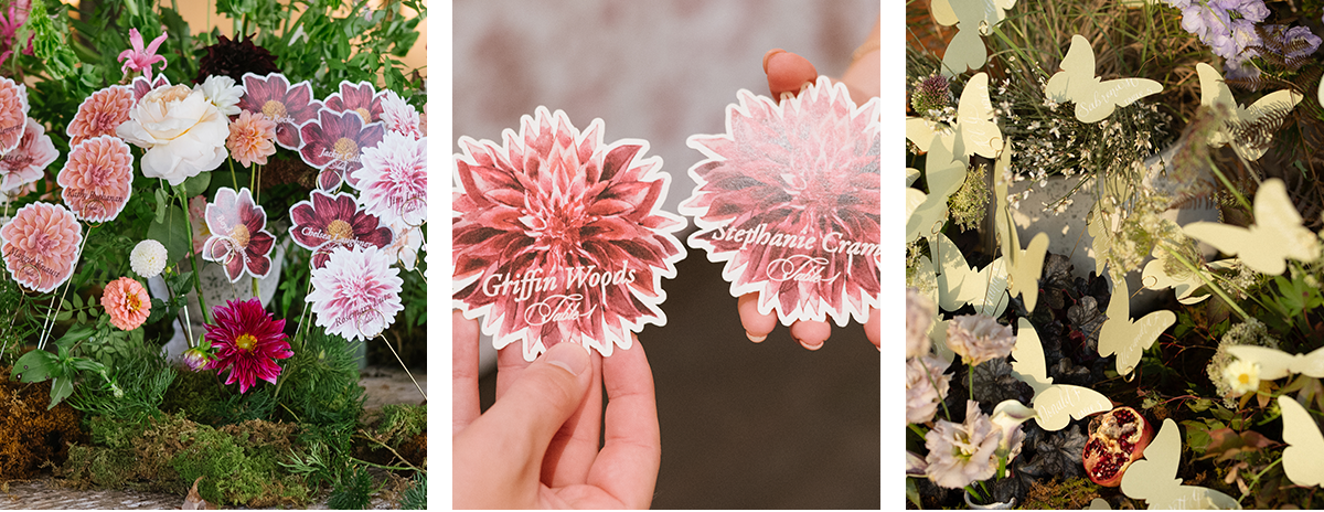 Couples are leaning into unexpected shapes, custom die cuts, and playful layouts that feel artful and personal. Each piece, from invitations to place cards, becomes part of the design and adds personality to the day.